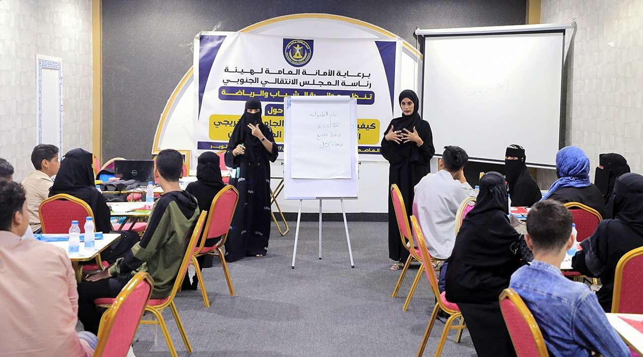 دشنت دائرة الشباب والرياضة بالأمانة العامة لهيئة رئاسة المجلس الانتقالي الجنوبي، يوم الأحد، المرحلة الثانية من ورشة العمل في كيفية اختيار التخصص الجامعي لطلاب الثانوية العامة بمشاركة فئتي الصُم والبُكم، بالعاصمة عدن
