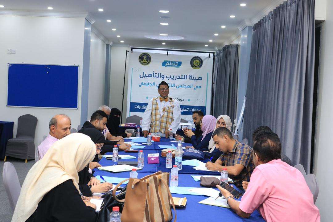 نظمت هيئة التدريب والتأهيل المساعدة لهيئة رئاسة المجلس الانتقالي الجنوبي، يوم الإثنين، في العاصمة عدن، دورة تدريبية بعنوان "مهارات تحليل المشكلات واتخاذ القرارات".