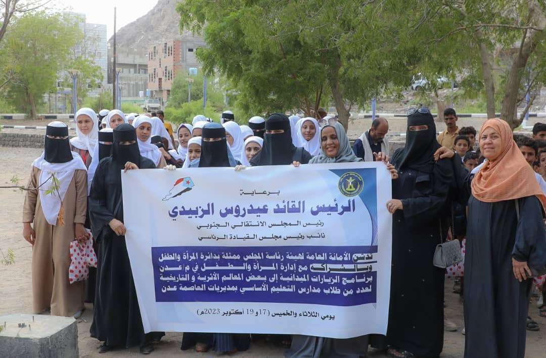 دشنت دائرة المرأة والطفل في الأمانة العامة لهيئة رئاسة المجلس الانتقالي الجنوبي بالشراكة مع إدارة المرأة والطفل لانتقالي العاصمة عدن، يوم الثلاثاء، برنامج الزيارات الميدانية إلى بعض المعالم الأثرية والتاريخية في العاصمة عدن لعدد من طلاب التعليم الأساسي في مديريات العاصمة.