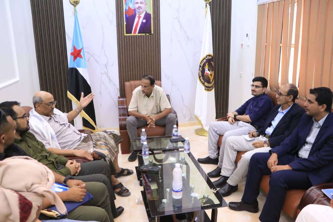 وكان في استقبال رئيس دائرة الشؤون القانونية وحقوق الإنسان، خلال نزوله، الدكتور سالم القميري عضو هيئة رئاسة المجلس الانتقالي الجنوبي، والأستاذ سعيد سعدان رئيس هيئة التطوير المؤسسي، والأستاذ مجاهد بن عفرار رئيس تنفيذية انتقالي المحافظة.
