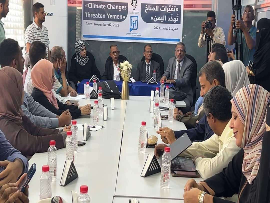نظمت مؤسسة الصحافة الإنسانية "hjf" اليوم الخميس 2 نوفمبر 2023 بالعاصمة عدن ورشة عمل عن "تغيرات المناخ تهدد اليمن" بحضور أكاديميون ومسؤولي الجهات الحكومية المختصة في وزارات الشؤون الاجتماعية والعمل، الزراعة، المياه والبيئة، والهيئة الوطنية للمرأة إلى جانب ممثلي المنظمات الدولية والمحلية والصحفيين والنشطاء الفاعلين في قضايا المناخ والبيئة.