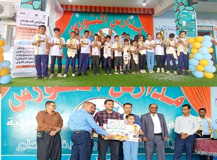 الصباح الجميل وتفاصيل ممراته ، كانت تحظى بحضور ، وكيلي وزارة التربية والتعليم.. الدكتور عبد الغني الشوذبي وكيل وزارة التربية لقطاع المناهج، والأستاذ محمد لملس وكيل وزارة التربية لقطاع التعليم، نظمت مدارس النورس الأهلية النموذجية حفلاً مصغراً لتكريم أبطالها الفائزين في البطولة العالمية للرياضيات الذهنية HORUS دبي 2023، والتي تصدرت فيها النورس جميع الدول والمدارس المشاركة في البطولة، حيث حصدت أعلى (3) مراكز (بطل الأبطال) من أصل (5) مراكز - وهو أعلى لقب يُمنح في البطولة- و (11) مركز بطل، و (٢) المركز الأول.