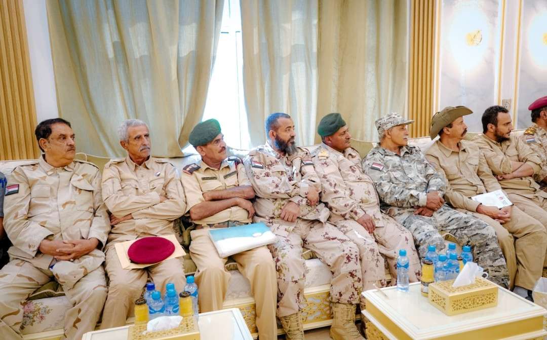 واطّلع الرئيس القائد بعدها من قادة المحاور والألوية العسكرية والوحدات الأمنية، على الموقف العسكري في جبهات في المواجهة مع المليشيات الحوثية، والأوضاع الأمنية في المحافظات، وسُبل تعزيزها.