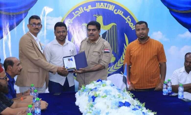كرم رئيس الهيئة التنفيذية للقيادة المحلية للمجلس الانتقالي الجنوبي بمحافظة حضرموت العميد الركن سعيد أحمد المحمدي، عددا من الناشطين في مجال العمل الإنساني بالمحافظة، بحضور المدير العام لمكتب وزارة الشؤون الاجتماعية والعمل بساحل حضرموت أحمد سالم باضروس..