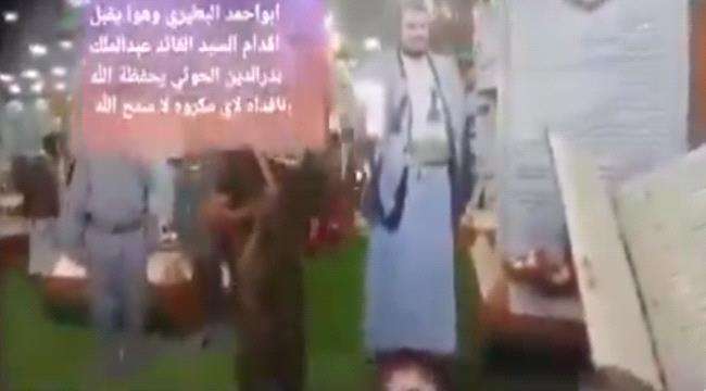 ويظهر في صور متداولة، مجندين في المليشيات يركعون أمام أقدام عبدالملك الحوثي ويقبّلونها في مشهد مهين للآدمية التي كرمها الله.