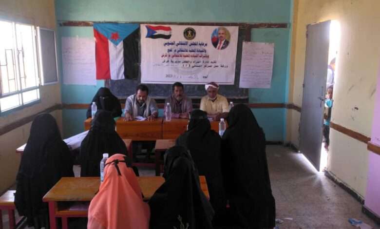 عقدت مدير إدارة المرأة والطفل بتنفيذية انتقالي مديرية كرش الاستاذة فريال محمود قائد ورشة عمل لعضوات انتقالي المركز “ج” بالضاحي.