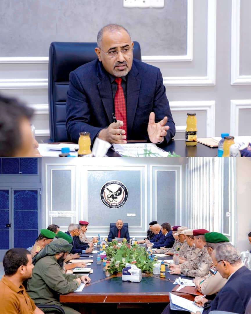 وشدد الرئيس الزُبيدي في الاجتماع على ضرورة تعزيز آليات العمل الأمني، وأهمية أن تعقد اللجنة اجتماعاتها بشكل دوري للوقوف على التطورات الأمنية أولا بأول، وبحث وتحديد أنسب الإجراءات لمواجهة التحديات التي تواجه العمل الأمني.