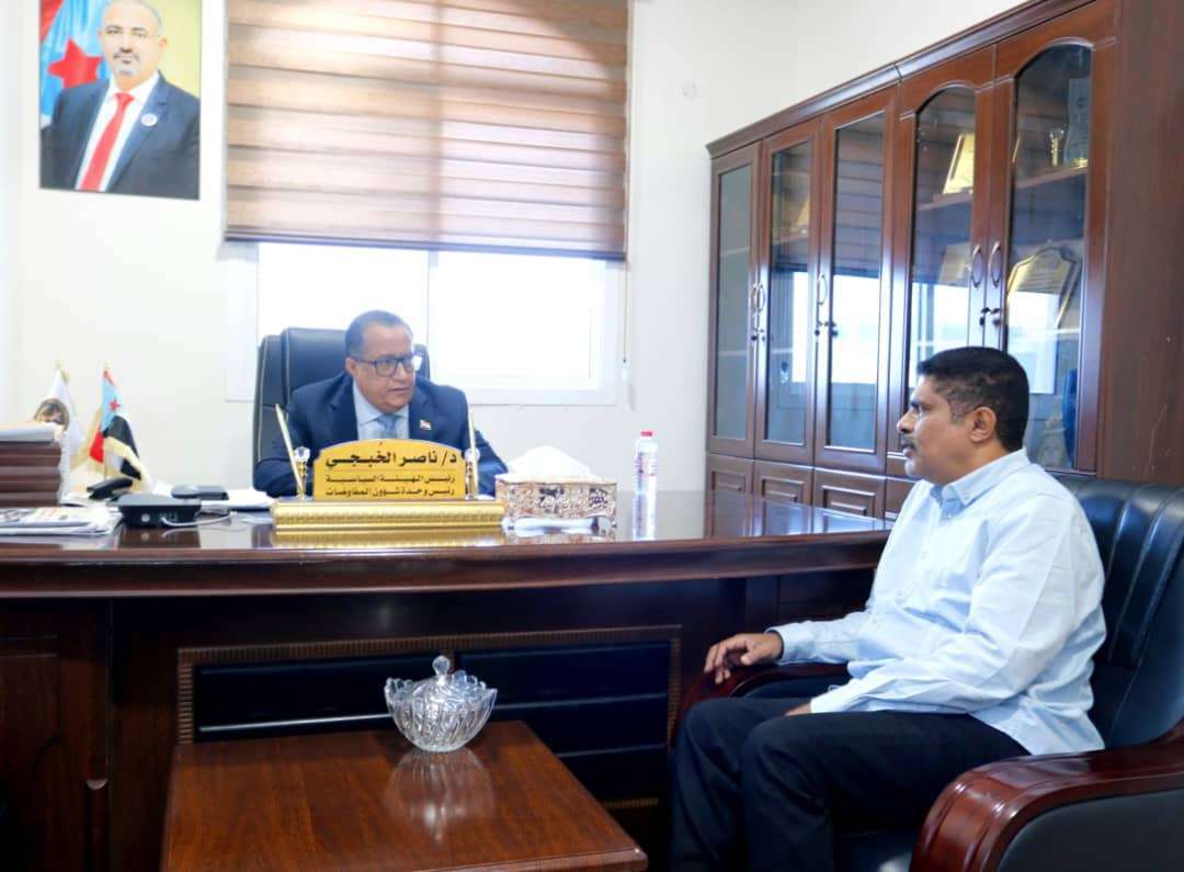 التقى الدكتور ناصر الخُبجي رئيس الهيئة السياسية، رئيس وحدة شؤون المفاوضات في المجلس الانتقالي الجنوبي، يوم الأحد بالعاصمة عدن، بالعميد سعيد المحمدي، رئيس الهيئة التنفيذية للقيادة المحلية للمجلس الانتقالي بمحافظة حضرموت.