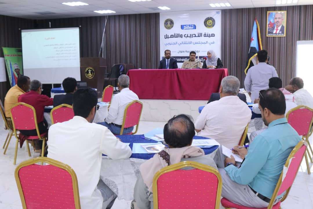 دشنت هيئة التدريب والتأهيل المساعدة لهيئة رئاسة المجلس الانتقالي الجنوبي، بمدينة المكلا في محافظة حضرموت، يوم الاثنين، دورة تدريبية في منهجية إعداد تقدير الموقف وبناء السيناريوهات السياسية.