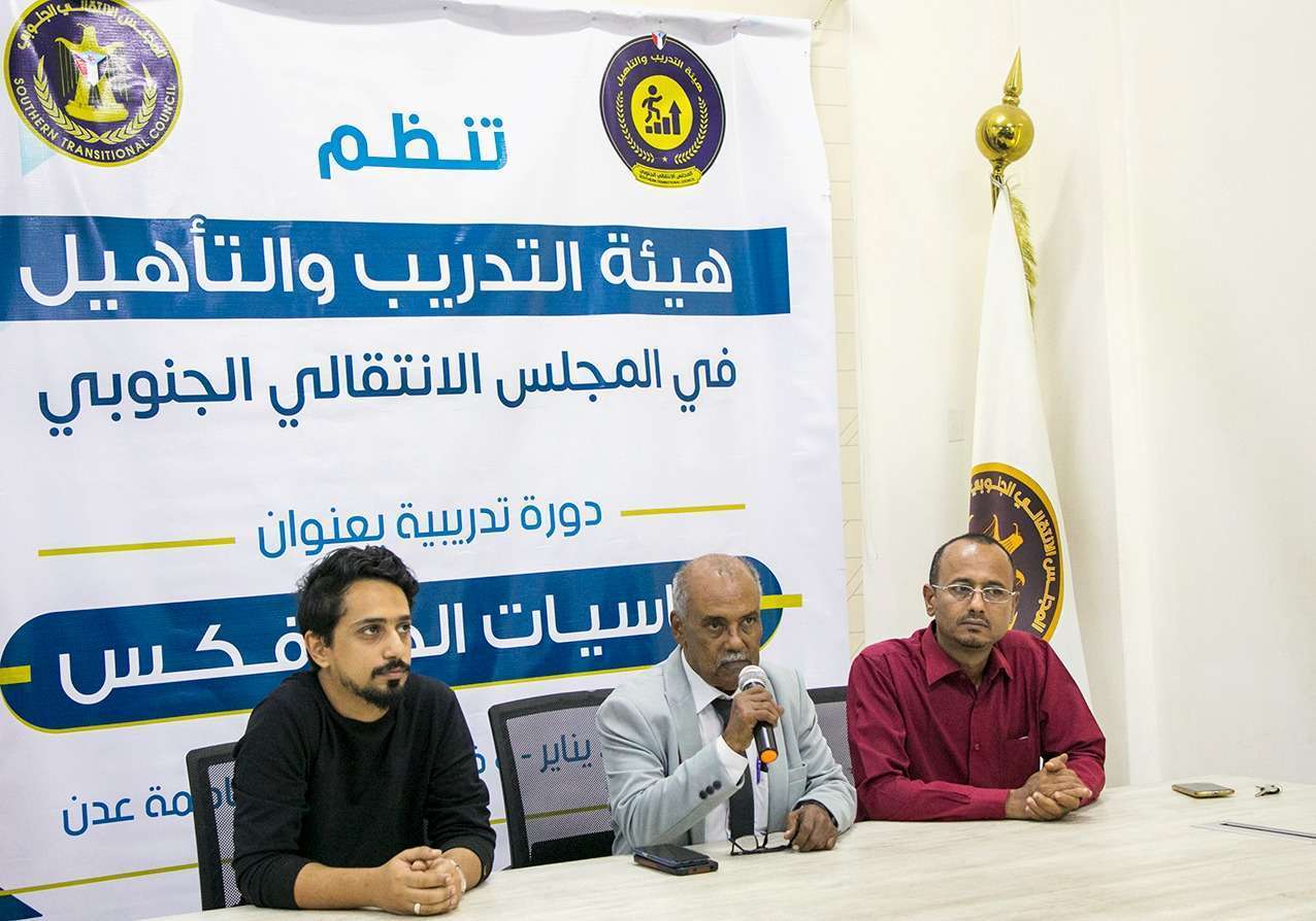 نظمت هيئة التدريب والتأهيل المساعدة لهيئة رئاسة المجلس الانتقالي الجنوبي، يوم الأحد، في العاصمة عدن، دورة تدريبية بعنوان " أساسيات الجرافكس" لعدد من كوادر المجلس والمؤسسات الإعلامية الجنوبية الاخرى.