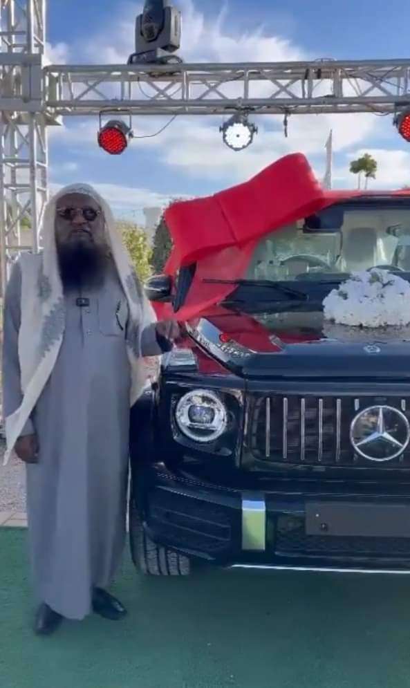 وثق مقطع فيديو متداول الشيخ عادل الكلباني وهو يقوم بإعلان للفوز بسيارة مرسيدس جي كلاس.