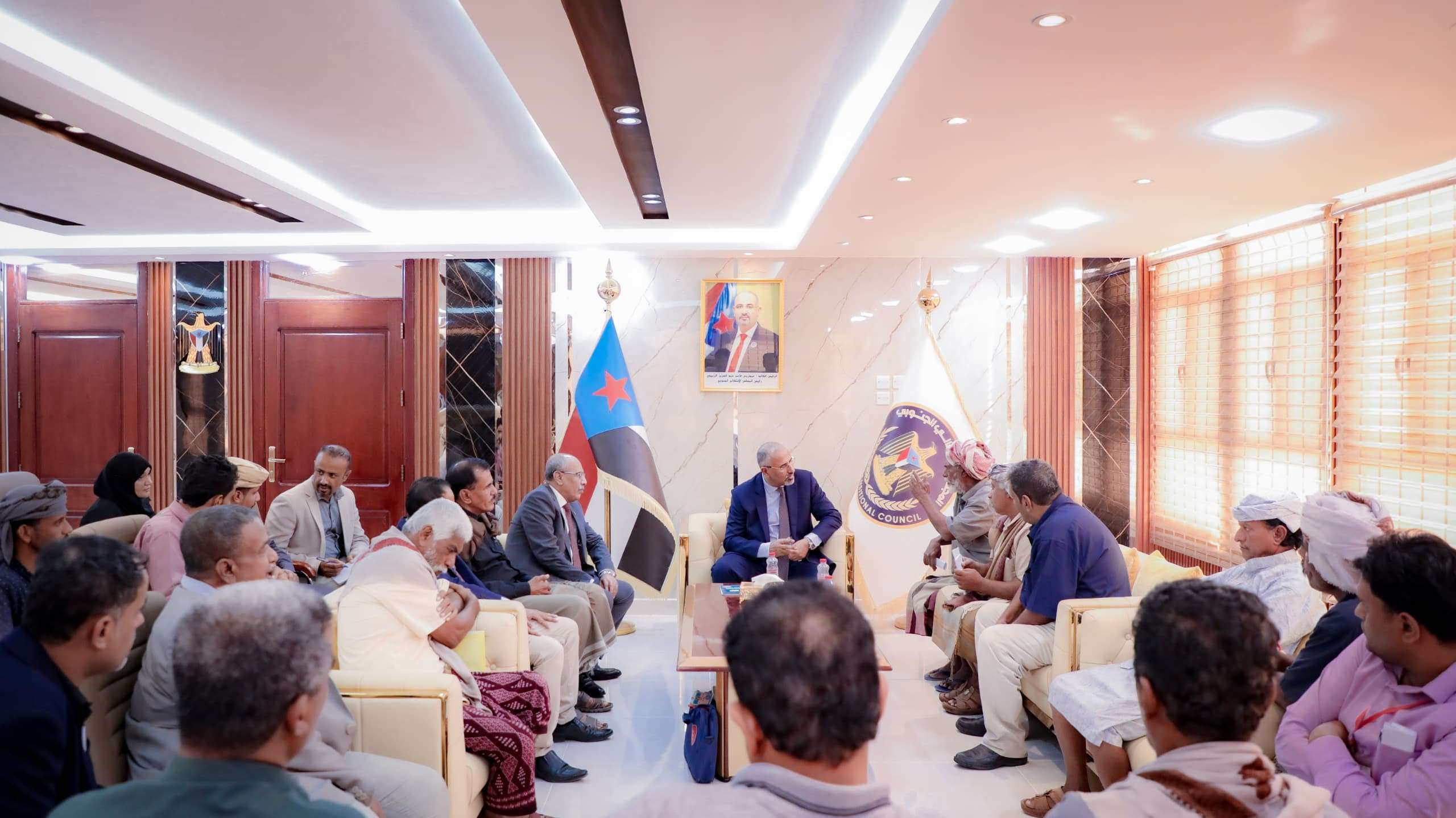 استقبل الرئيس القائد عيدروس قاسم الزُبيدي رئيس المجلس الانتقالي الجنوبي، نائب رئيس مجلس القيادة الرئاسي، يوم الأحد وفدا من مقادمة قبائل الحموم في محافظة حضرموت برئاسة الشيخ سالمين بن مجنح الحمومي شيخ قبائل الحموم.