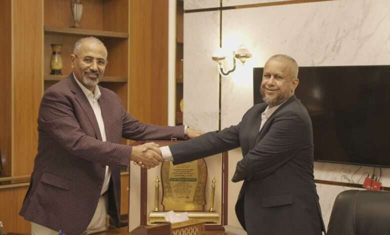 إلتقى الرئيس عيدروس قاسم الزبيدي، رئيس المجلس الانتقالي، نائب رئيس مجلس القيادة الرئاسي بمكتبه ، بالاستاذ خالد هرم أبو سلطان العمري رئيس اتحاد الجمعيات والمؤسسات الاجتماعية الخيرية التنموية.
