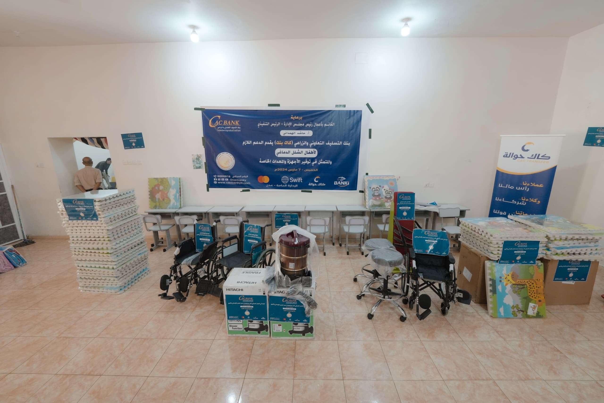 سلم بنك التسليف التعاوني والزراعي كاك بنك، المعدات والاجهزة الطبية التي سبق وان اعلن عنها في وقت سابق لدعم ومساعدة اطفال الشلل الدماغي والتي ترعاهم مؤسسة الحق في الحياة في العاصمة عدن، وذلك في اطار إيمانه بمسؤوليته الاجتماعية تجاه المجتمع وتفعيلاً لواجب التكافل والتعاون والتي تعتبر ركيزة أساسية لتوجهاته وثقافة البنك وبيئة التزامه.