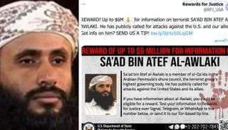 وفي نوفمبر/تشرين الثاني 2019، رصد “برنامج مكافآت من أجل العدالة”، ستة ملايين دولار لمن يدلي بمعلومات عن العولقي.