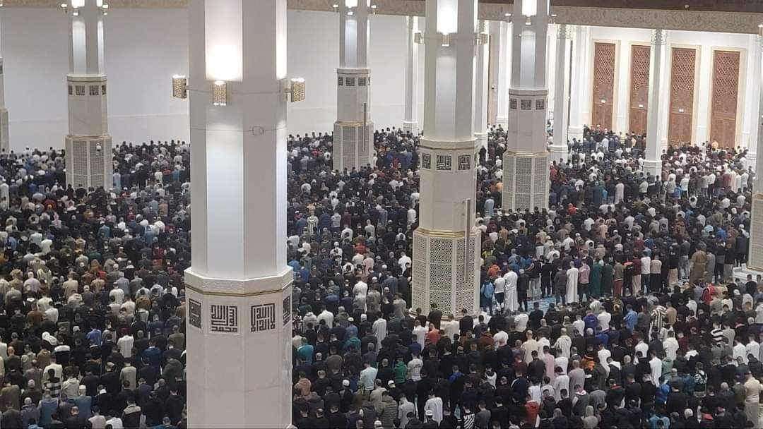وأدى عشرات الآلاف من الرجال والنساء، صلاة التراويح في القاعة الرئيسية للجامع التي امتلأت عن آخرها، وتناوب عدد من المقرئين على تلاوة القرآن الكريم.