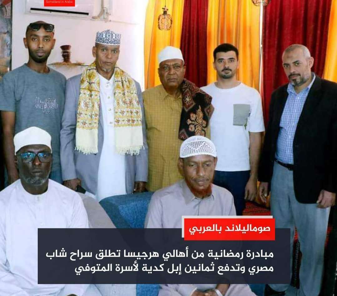 وصرحت اللجنة المكونة من هيئة العلماء بإنها "جمعت أموال التعويضات من أهالي هرجيسا، وذلك لمساعدة الشاب المصري كريم محمود والذي كان يقود سيارته في شرق العاصمة هرجيسا، وأضاف بأن هذه المبادرة تأتي خلال هذا الشهر الفضيل لمساعدة المسلم الضيف والبعيد عن وطنه وأهله"