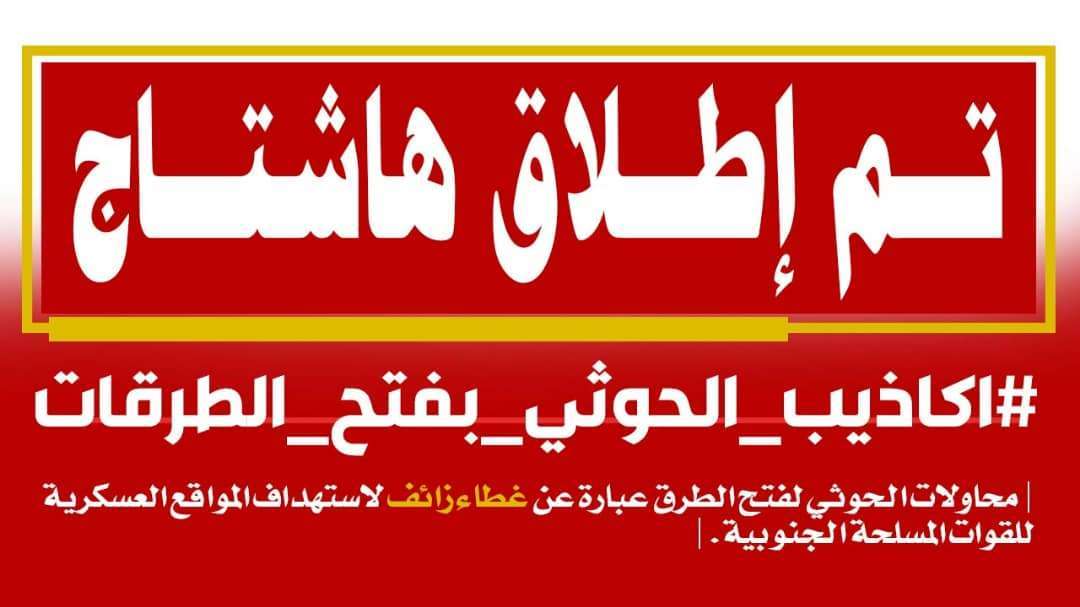 ومساء اليوم الجمعة 15 مارس/آذار 2024م، اطلق ناشطون وسياسيون جنوبيون هاشتاج #اكاذيب_الحوثي_بفتح_الطرقات على كافة مواقع التواصل الاجتماعي، واشهرها منصة (X)، المعروف سابقًا بـ (تويتر).