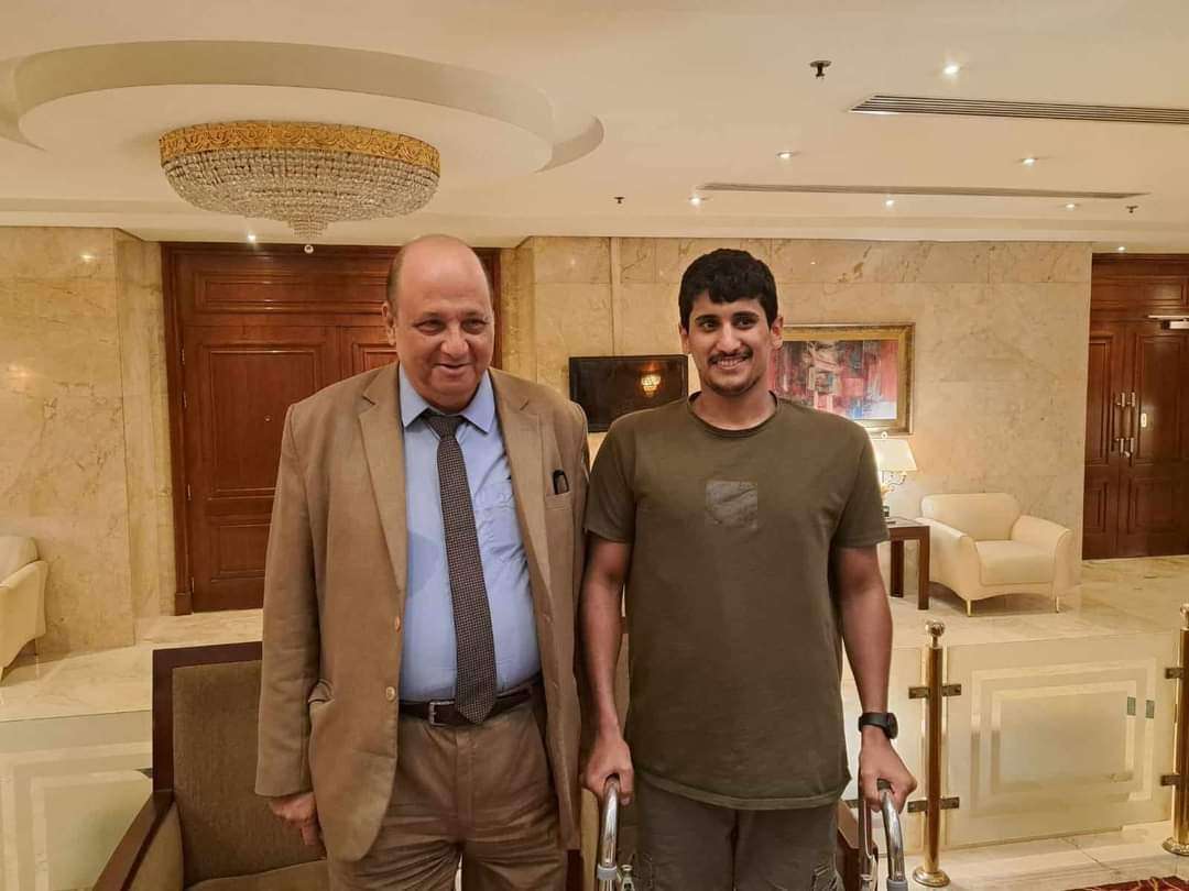 وجاء هذا الاختيار نظرا للتاريخ المشرف للشاب الاستاذ صقر حسن حيث اصيب فى اليمن منذ ثلاث سنوات إصابة فى الحبل الشوكى لكنه رغم صغر سنه وقتها سافر إلى مصر وبدأ رحلة علاج ما زالت مستمرة ومع رحلة العلاج يواصل دراسته فى جامعة القاهرة بكلية التجارة قسم إدارة الاعمال وأصبح صقر حسن صالح بن سعد رمزا لعدد كبير من الشباب ممن يعالجون من إصابات فى بعض المراكز الطبية بالقاهرة حيث يبث فيهم روح الامل ويرفع معنوياتهم