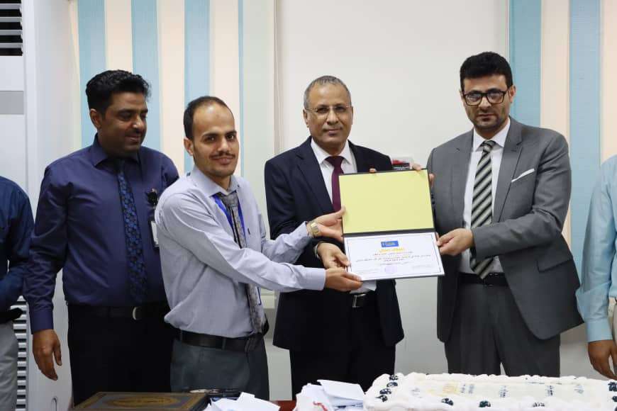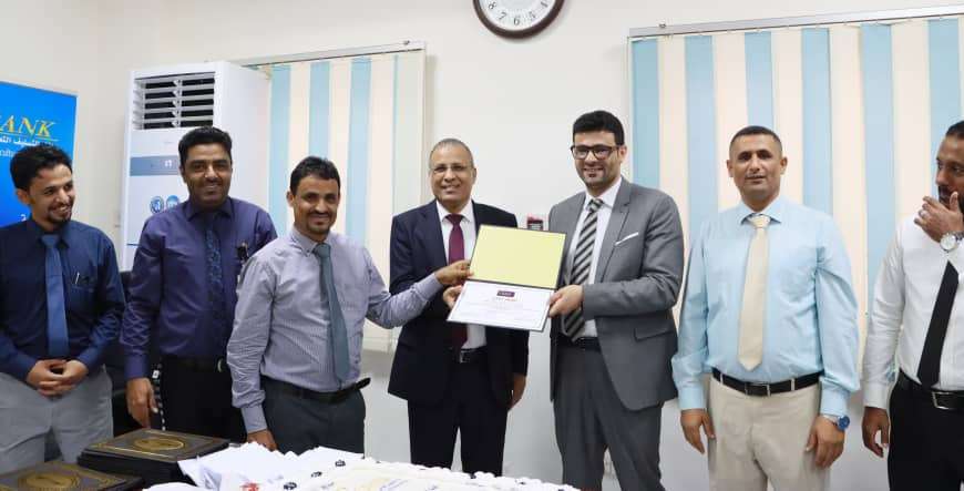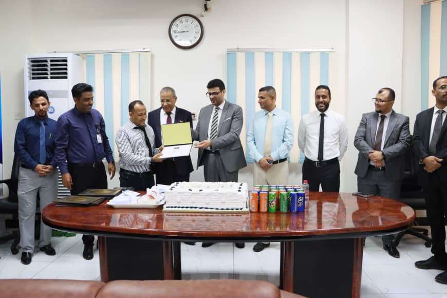 كرم القائم بأعمال رئيس مجلس الادارة الرئيس التنفيذي لـ بنك التسليف التعاوني والزراعي «كاك بنك» الاستاذ/ حاشد الهمداني بالإدارة العامة بالعاصمة عدن الموظفين المثاليين بالبنك بمناسبة عيد العمال العالمي. وشمل التكريم جميع الموظفين المثاليين والمتميزين في أداء عملهم في الفترة السابقة من جميع الإدارات والفروع في البنك