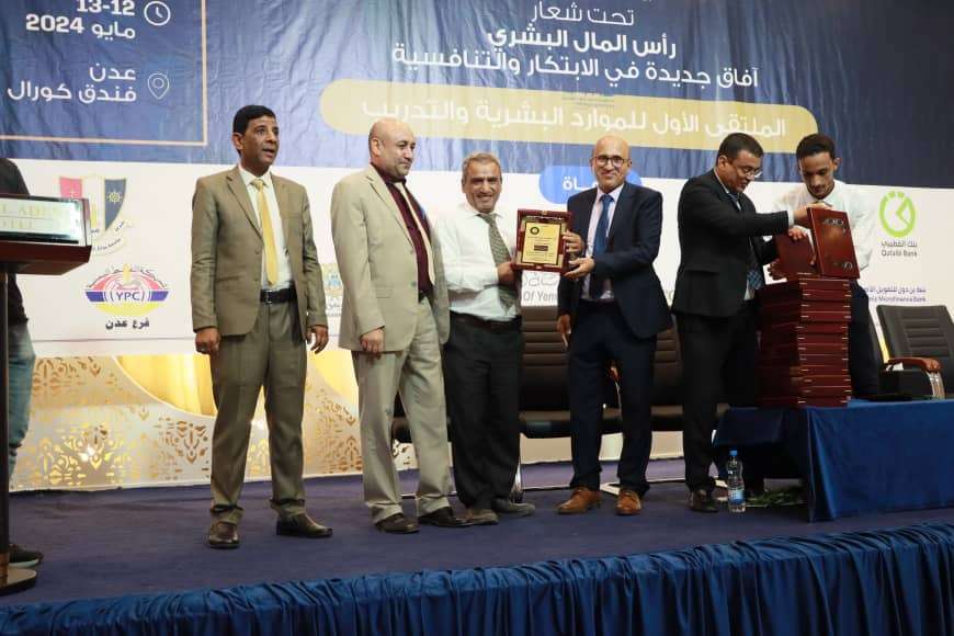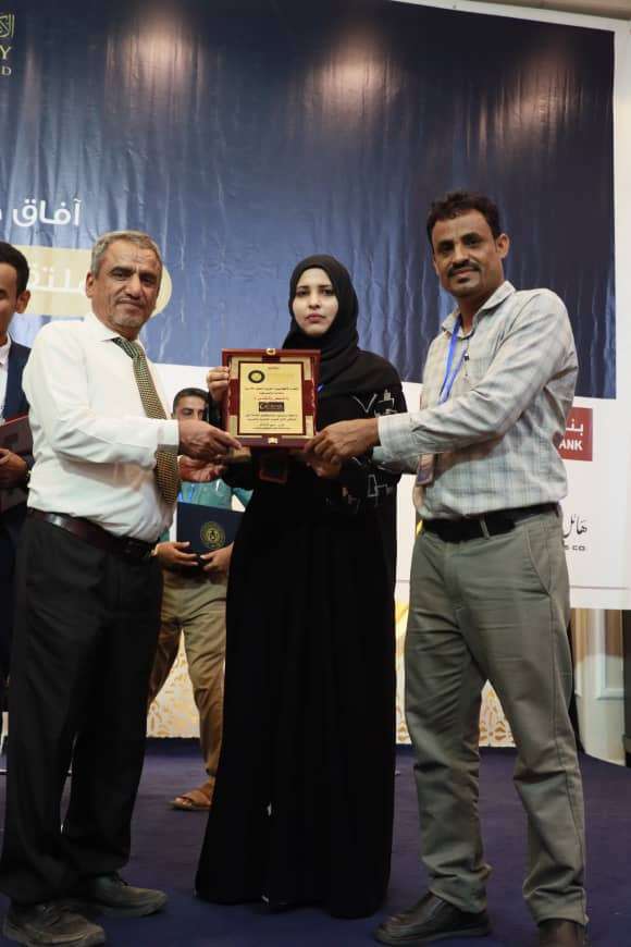 واستلم درع التكريم مستشار الرئيس الاستاذ/ عبدالله الظرافي، وذلك بالنيابة عن القائم باعمال رئيس مجلس الادارة، المدير التتفيذي الاستاذ/ حاشد الهمداني.