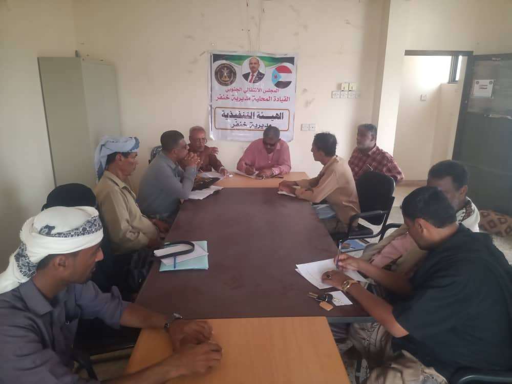 عقدت الهيئة التنفيذية للقيادة المحلية للمجلس الانتقالي الجنوبي في مديرية خنفر بمحافظة أبين، اليوم الأربعاء، اجتماعها الدوري لشهر يوليو، برئاسة صالح ناجي بن عطاف، رئيس الهيئة.