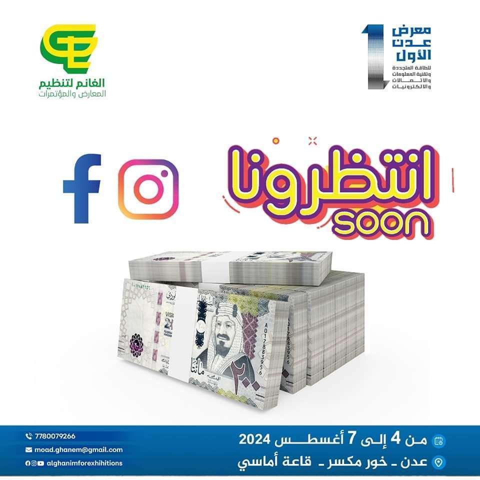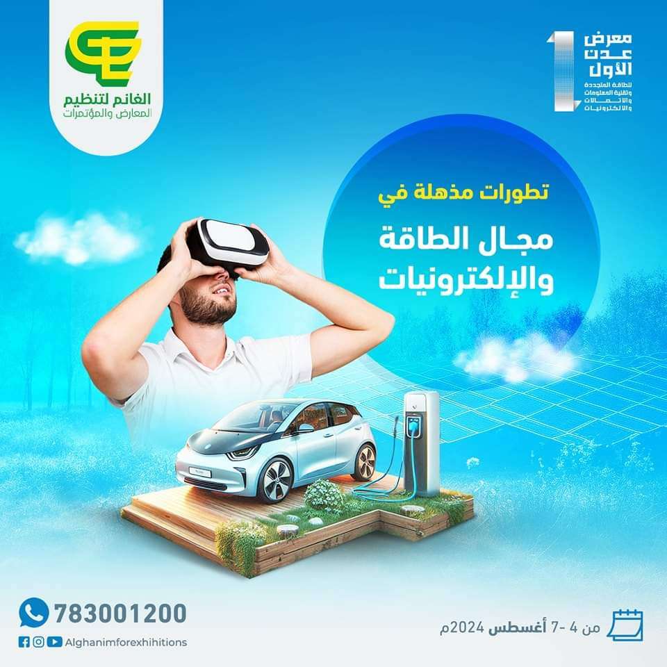 أعلنت مؤسسة الغانم لتنظيم المعارض،بان موعد انطلاق المعرض الأول للطاقة المتجددة وتقنية المعلومات بالعاصمة عدن، سينطلق في موعده المحدد بتاريخ ٤اغسطس القادم .