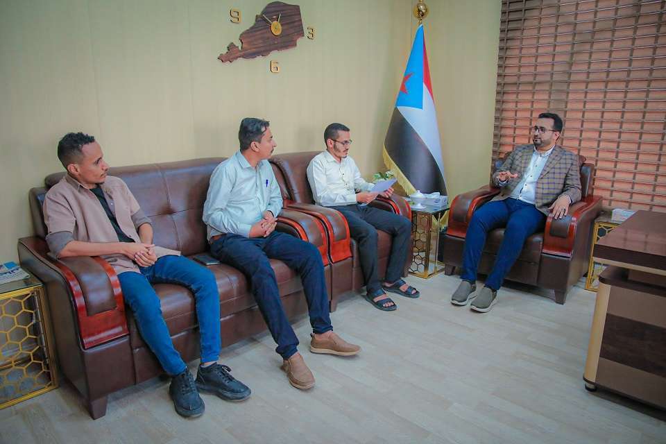 التقى رئيس الهيئة الوطنية للإعلام المتحدث الرسمي باسم المجلس الانتقالي الجنوبي سالم ثابت العولقي، اليوم الثلاثاء، في مكتبة بمقر الهيئة بالعاصمة عدن بوفد من منصة (بساط ونون) الثقافية ومنصة (حِميَر) الإعلامية.