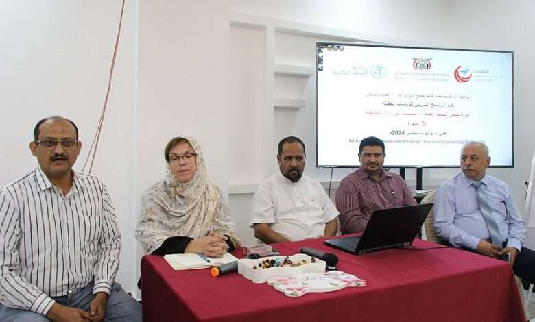 اختتمت بالعاصمة عدن، اليوم، الدورة الأولى من البرنامج التدريبي للوبائيات الحقلية والتي نظمتها وزارة الصحة العامة والسكان، بالتعاون مع منظمة الصحة العالمية وشبكة الشرق اوسطية للصحة المجتمعية (امفنت)
