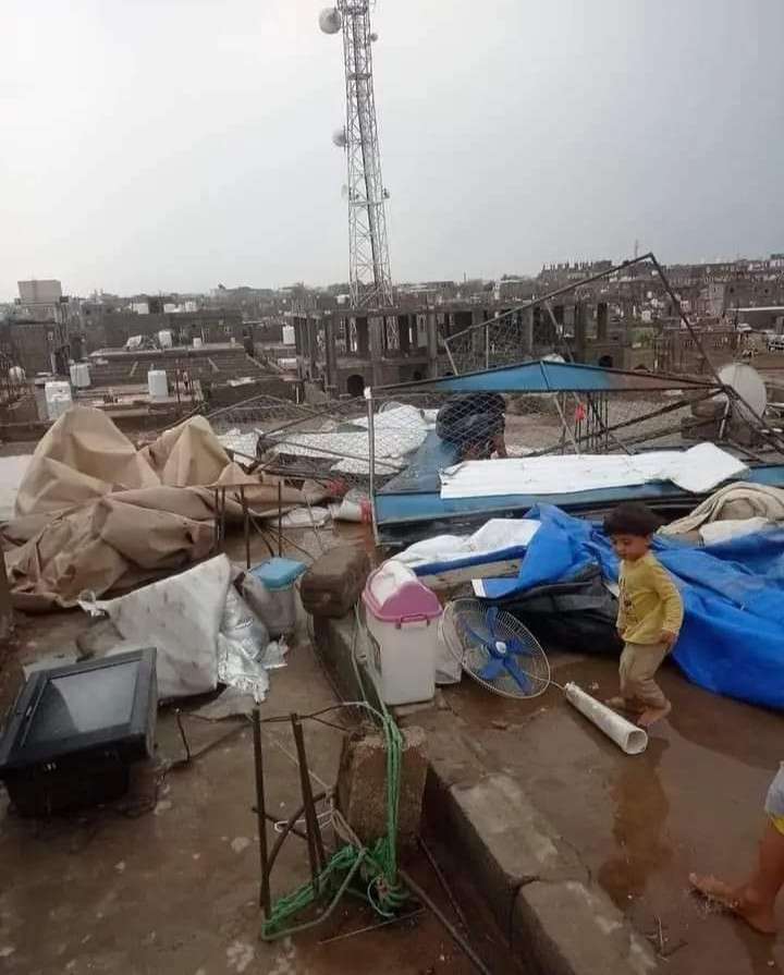 وقال نازحون إن الرياح الشديدة تسببت في سقوط ستة من أعمدة الكهرباء على الأقل، في مخيم الجفينة أكبر مخيمات النزوح في اليمن.