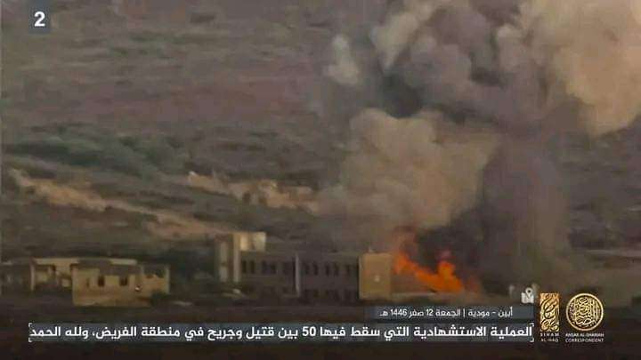 أعلن تنظيم القاعدة الإرهابي مسؤوليته عن الهجوم الانتحاري الذي استهدف ثكنة عسكرية لقوات اللواء الثالث دعم وإسناد في منطقة الفريض بمديرية مودية، محافظة أبين.