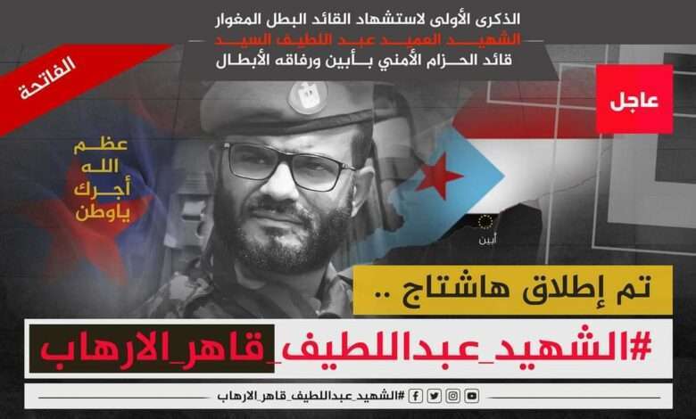 كما نوهوا إلى: “الأهمية الكبيرة التي اولاها المجلس الانتقالي الجنوبي ممثل بالرئيس الزُبيدي، بحلول الذكرى الأولى لاستشهاد البطل عبد اللطيف السيد، ورفاقه الابطال، وبما يليق بحجم وتضحيات وبسالة الشهيد السيد، والبطولات التي سطرها في مكافحة الجماعات الإرهابية، وفي الدفاع عن أرض الجنوب وأمنه واستقراره، وكذا بحجم التضحيات التي قدمها أبطال القوات المُسلحة الجنوبية منذ انطلاق (سهام الشرق)، لاستئصال الجماعات الإرهابية بأبين، والمستمرة حتى اليوم”.