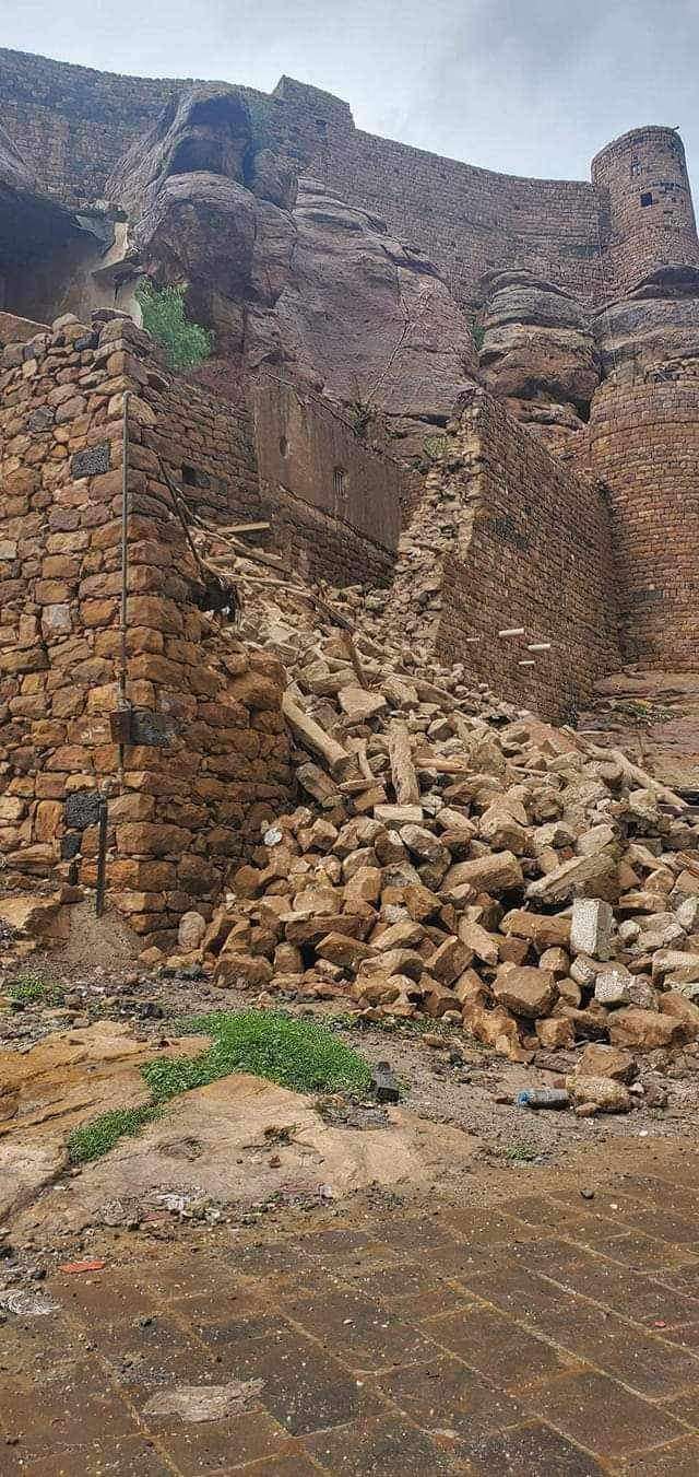 تعرضت الأجزاء الغربية والبوابة الرئيسية لقلعة رداع التاريخية بمحافظة البيضاء عصر اليوم السبت للانهيار جراء مياه الأمطار التي لا يوجد لها تصريف، بالإضافة إلى إهمال أعمال الصيانة والترميم، مما أثار مخاوف من حدوث كارثة للمنازل المحيطة بالقلعة من جميع الاتجاهات.