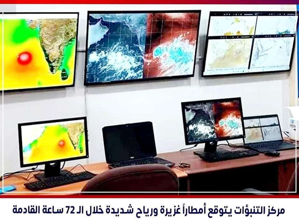 وأوضح المركز في نشرته الجوية، أن صور الأقمار الاصطناعية ومخرجات النماذج العددية وطبقات الجو العليا والرصد السطحي، تشير إلى استمرار تأثر بلادنا بأمطار رعدية ورياح شديدة، مشيرا إلى احتمال استمرار هطول أمطار متفاوتة الشدة بعضها مصحوبة بالصواعق الرعدية، والرياح الشديدة على أجزاء من صحاري ومرتفعات وهضاب محافظات (المهرة، حضرموت، شبوة، أبين، مأرب، الجوف).