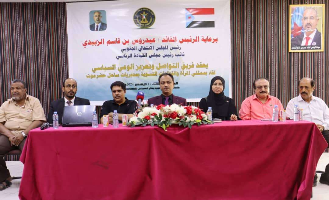 عقد فريق التواصل وتعزيز الوعي السياسي، برئاسة الأستاذ فادي حسن باعوم، عضو هيئة الرئاسة، يوم الثلاثاء، بمدينة المكلا، لقاءً بممثلي المرأة والقطاعات النسوية بمديريات ساحل حضرموت.