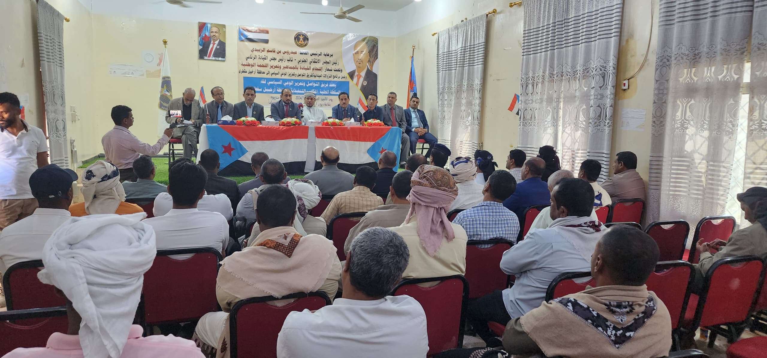 عقد فريق التواصل وتعزيز الوعي السياسي بالمجلس الانتقالي الجنوبي، برئاسة عضو هيئة الرئاسة، الشيخ عبدالرحمن جلال عبدالقوي، يوم الاثنين، لقاءً موسعًا مع المكتب التنفيذي للسلطة المحلية في محافظة سقطرى.