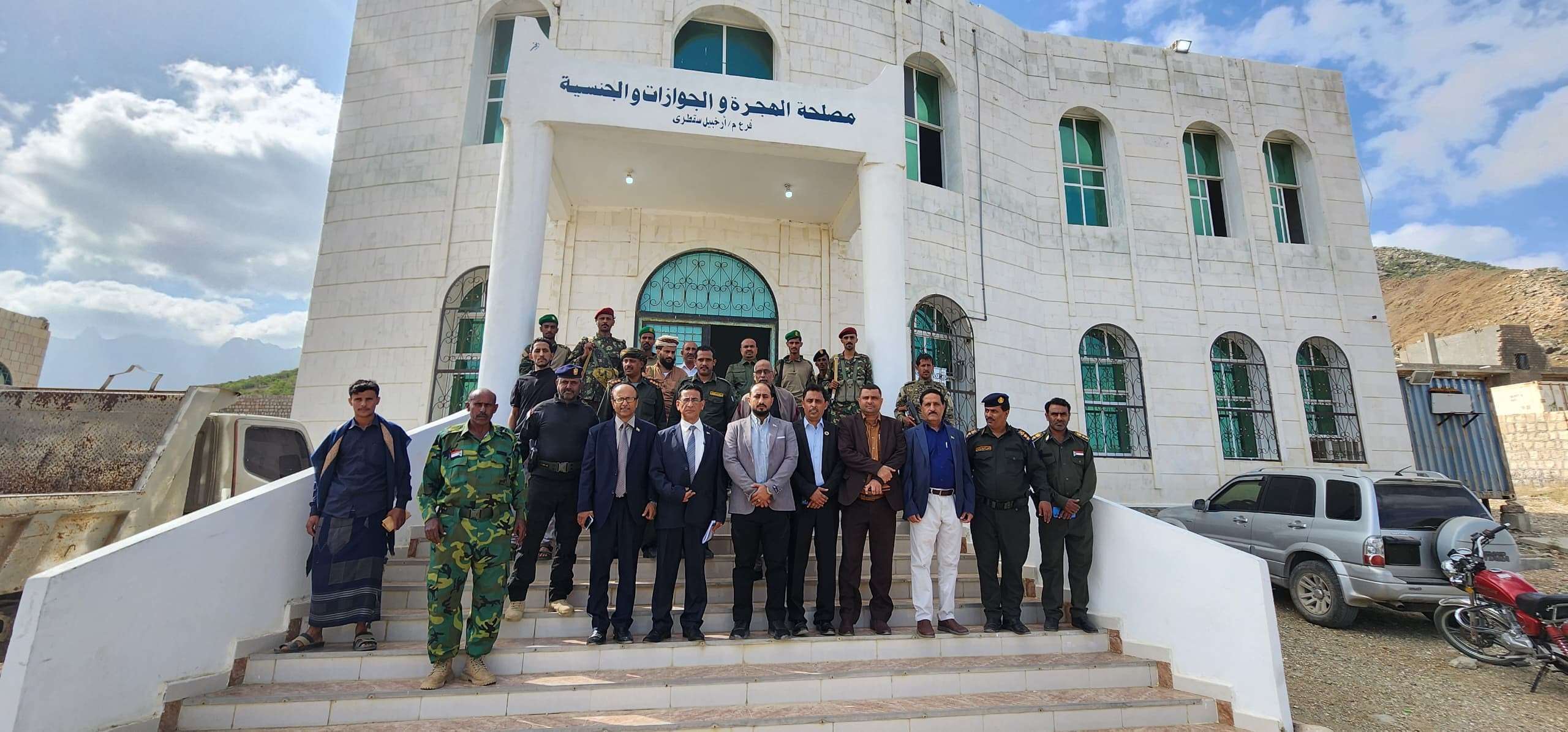 واستمع الفريق من مدير مصلحة الهجرة والجوازات والجنسية، النقيب أحمد محمد المعولي، إلى الخدمات المقدمة للمواطنين، والصعوبات الكبيرة للحصول على الوثائق الثبوتية في الماضي بسبب نقص الإمكانيات وغياب التجهيزات الأساسية، وأشار المعولي إلى أن هذه المشكلات تم تجاوزها بفضل جهود قيادة المحافظة التي عملت على توفير الاحتياجات اللازمة.