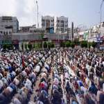 أبناء سقطرى يؤدون صلاة الجمعة في ساحة الاعتصام المفتوح تحت شعار "الثبات و التمكين"