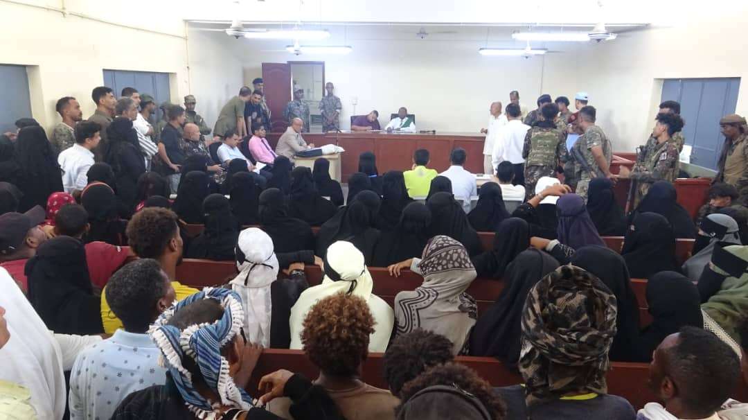 وخلال الجلسة، استمعت المحكمة إلى مرافعات الدفاع والاتهام، حيث ترافع عن المتهم المحامي ياسر شماخ، فيما مثل النيابة العامة القاضي وضاح باذيب رئيس نيابة استئناف جنوب عدن، والقاضي عبيد بن عبدات عضو نيابة صيرة الابتدائية.