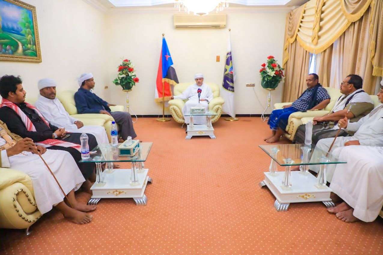 استقبل الأستاذ علي عبدالله الكثيري، رئيس الجمعية الوطنية للمجلس الانتقالي الجنوبي، اليوم الإثنين، وفدًا من مقادمة ومشايخ ووجهاء قبيلة بني تميم، وذلك في مقر إقامته بالقصر الرئاسي بمدينة سيئون.