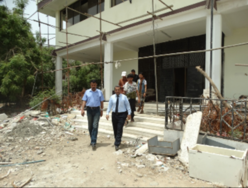 حيث اطلع الوكيلان على مستوى ونسبة الانجاز لاعمال التأهيل التي ستشمل المبنى المكون من أربعة طوابق مع الحفاظ على الطابع المعماري القديم للمبنى .