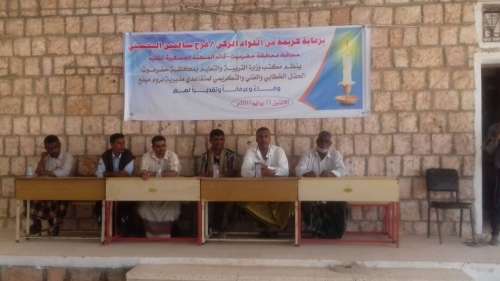وبدورة اشار الاستاذ مسلم سليمان الشماسي مدير ادارة التربية والتعليم بالمديرية بان هذة الخطوى تعد الاولى من نوعها على مستوى المديرية وانة كان حقا علينا تكريم هؤلائي المعلمين نظير مابذلوه من جهود وعمل دؤب في مجال التربية والتعليم شاكرا الجهود التي يبدلها مكتب التربية والتعليم بالمحافظة ممثلا بالاستاذ جمال سالم عبدون والسلطة المحلية بالمديرية ممثلا بالعقيد ناصر علي الشعيبي .
