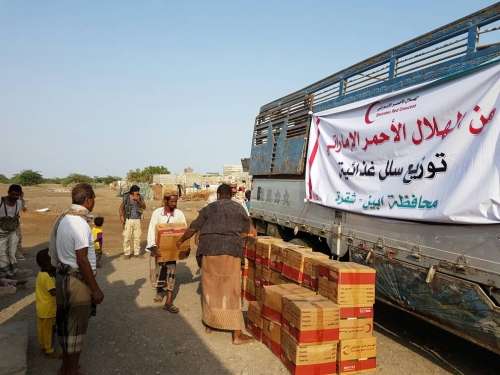 وزع الهلال الأحمر الإماراتي مساء أمس 700 سلة غذائية لأهالي مدينة شقرة الساحلية بمحافظة أبين.