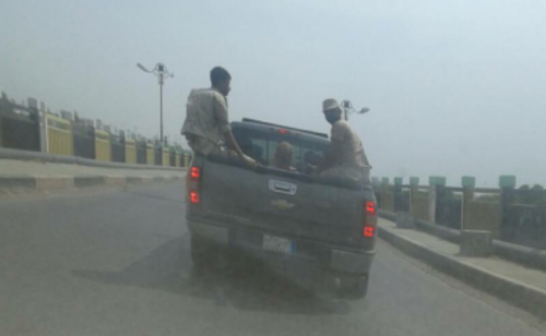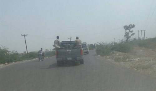 هذه صورة السيارة الهيلوكس التي تم ضبطها في نقطة دوفس بأبين وجنود النقطة يرافقونها باتجاه معسكر 7 أكتوبر بمنطقة الحصن بأبين.