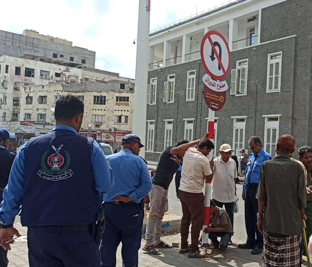 تركيب إرشادات مرورية جديدة في مديريات عدن