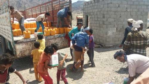 سيرت قبيلة آل "الحاج" مشالة يافع قافلة خيرية لاغاثة اسر نازحة في مناطق كرش من جراء الحرب القائمة هناك .