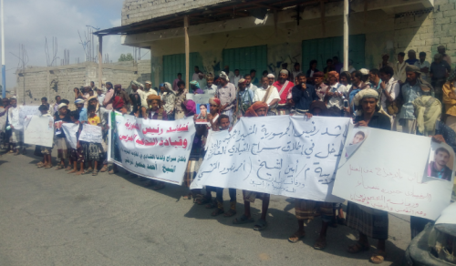 وخلال الوقفة الإحتجاجية والذي شارك فيها حشدٌ كبيراً من كافة قبائل آل فضل إلى جانب إخوانهم في قبائل المراقشة وبحضور ممثلي عدد من منظمات المجتمع المدني بالمحافظة .