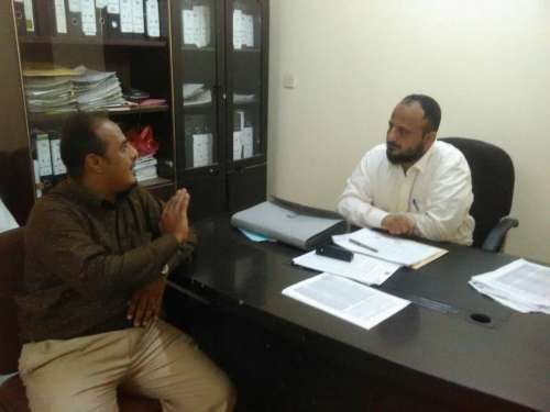 ناقش مدير عام مديرية البريقة بمحافظة عدن هاني محمد اليزيدي ، مع ممثل الصندوق الإجتماعي للتنمية المهندس أوسان محمد الحاج ، الترتيبات لتنفيذ مشروع تشغيل النازحين بالمديرية .