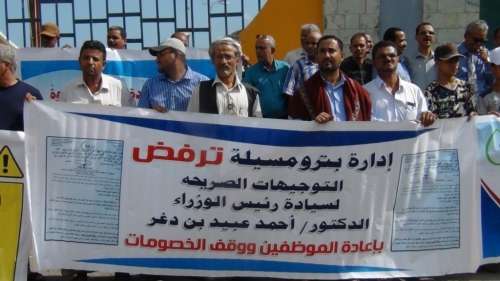 وأكد المشاركون في الوقفة الاحتجاجية بانه سبق وان تقدموا برفع أكثر من مذكر ة لدولة رئيس مجلس الوزراء الدكتور أحمد عبيد بن دغر والذي وجه بدوره لمدير الشركة بإعادة الموظفين إلى أعمالهم ولكن دون جدوى .