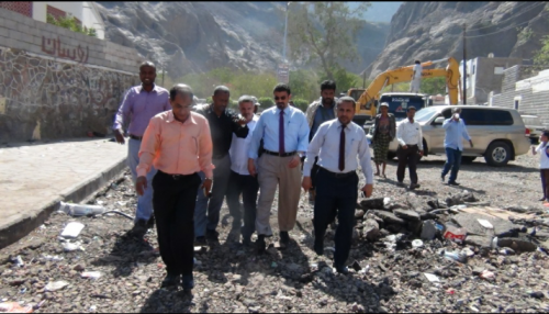 رافقهم في الزيارة المهندس عارف اليماني مدير مكتب الأشغال بمديرية صيرة واخرون.